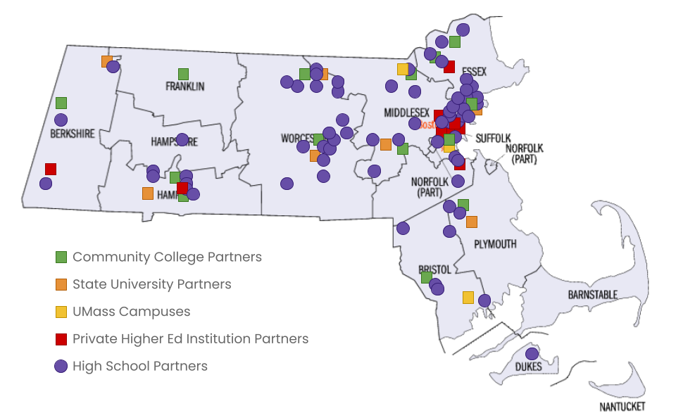 Since 2017, the Early College Joint Committee has approved 73 designated Early College programs across 69 high schools and 32 higher education institutions. Students have access to designated Early College in 85% of Massachusetts’ Gateway Cities and all 7 WIOA regions.